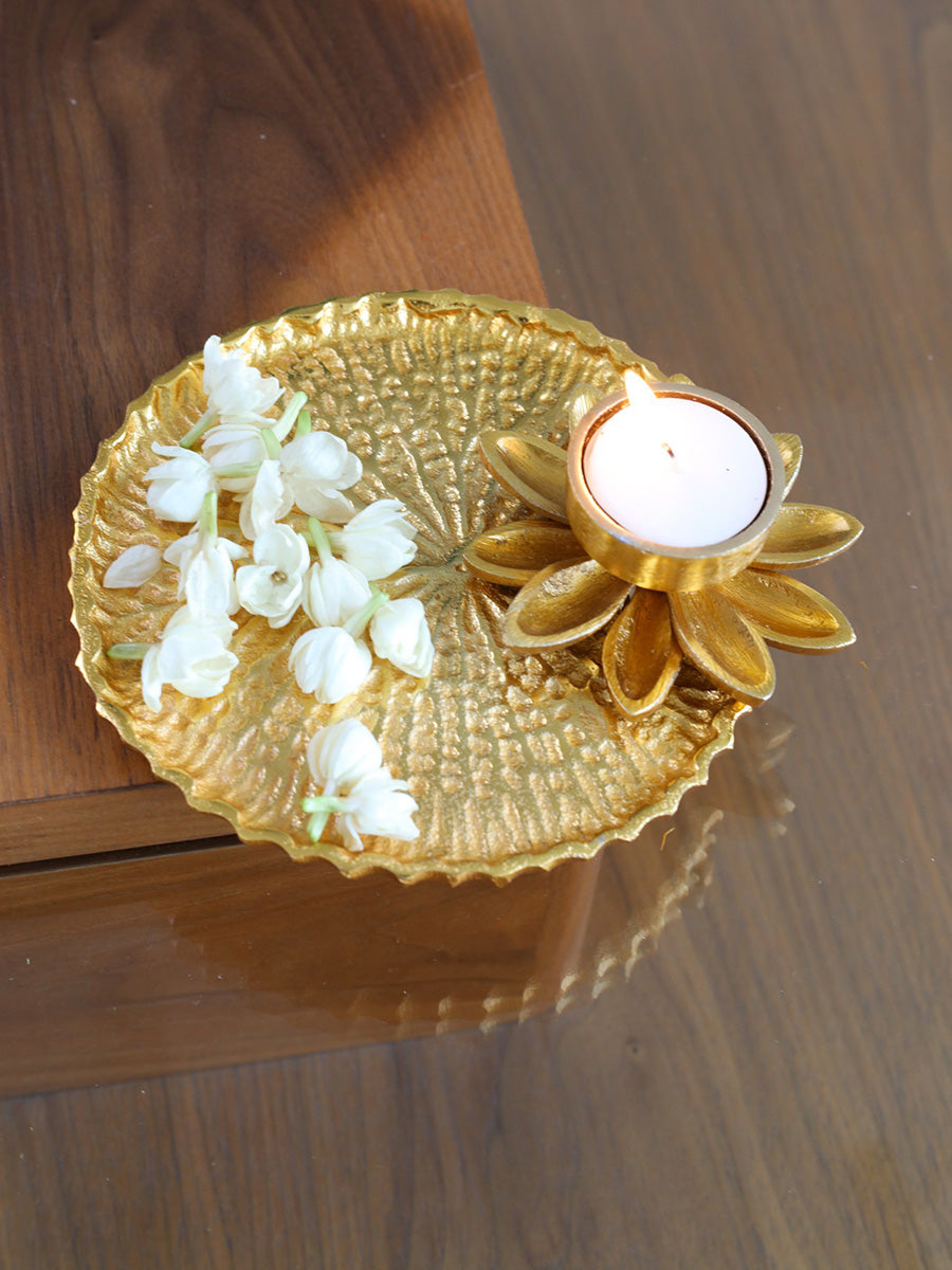 Celebrate traditions in style with our Golden Diya Plate, a perfect blend of charm and functionality. Whether for Tikka ceremonies, Rakhi celebrations, Ganpati rituals, or festive decor, this versatile plate adds a radiant touch to any occasion.