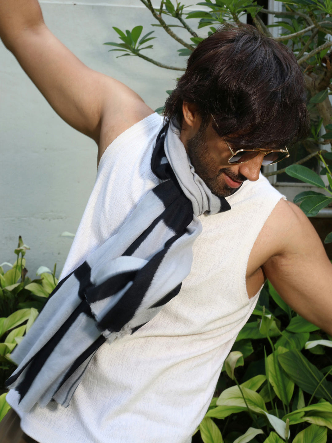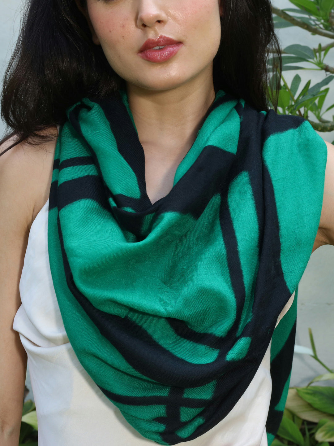 Made from a blend of silk and wool, it offers a soft touch and a graceful drape.