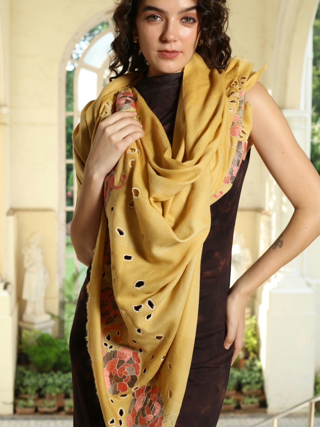 Elevate your style with the Intricate Illusion Silk Wool Shawl!